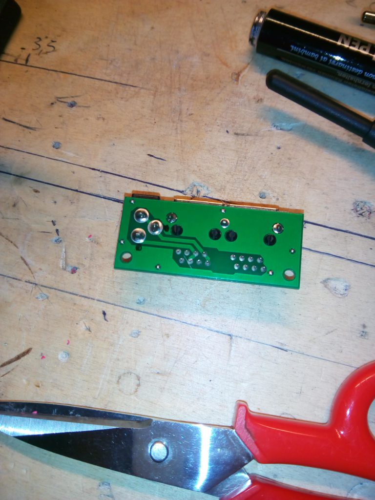 avendo così a vista la semplice circuiteria, e, con l’aiuto di un alimentatore da 12V collegato allo spinotto di ingresso dei poe e il Multimetro digitale, una volta capovolto il pezzo, ho individuato le saldature dalle quali passa di norma la corrente a 12V, segnando le saldature con un pennarello come potete vedere nella seguente immagine:
