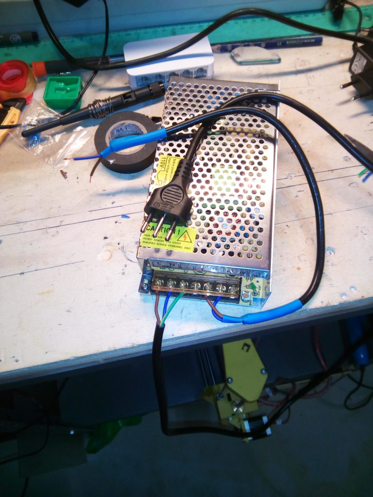 Una volta effettuato il collegamento fatto allentando i morsetti con un cacciavite a croce, e inserendo uno per volta i relativi cavi facendo attenzione a non creare corto circuiti (cavi diversi che si toccano tra di loro) e badando bene che la parte sprovvista di guaina (il rame) non sporgesse dalla morsettiera stessa ho chiuso lo sportelletto di plastica di protezione di cui è provvisto l’alimentatore e inserito la spina.